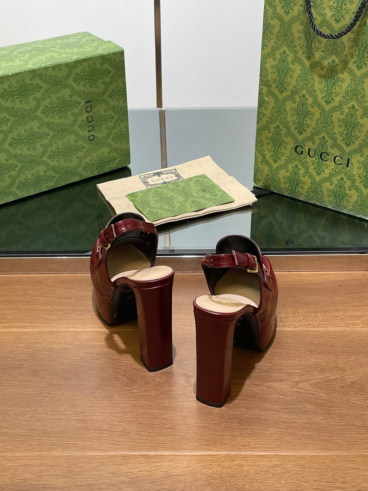 GG WOMEN'S HORSEBIT PLATFORM SLINGBACK IN ROSSO ANCORA RED CALFSKIN