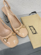 GG WOMEN'S HORSEBIT SLINGBACK 95MM IN TAN BEIGE CALFSKIN WITH RHINSTONES