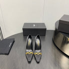 HIGH PUMPS IN BLACK SILK ATTACHED GOLD CHAIN