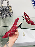 J'Adior Slingback Pump 65mm In Red Floral Embroidered Lace Fabric 100845
