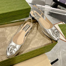 METALIC SLINGBACK FLATS IN SILVER CALFSKIN
