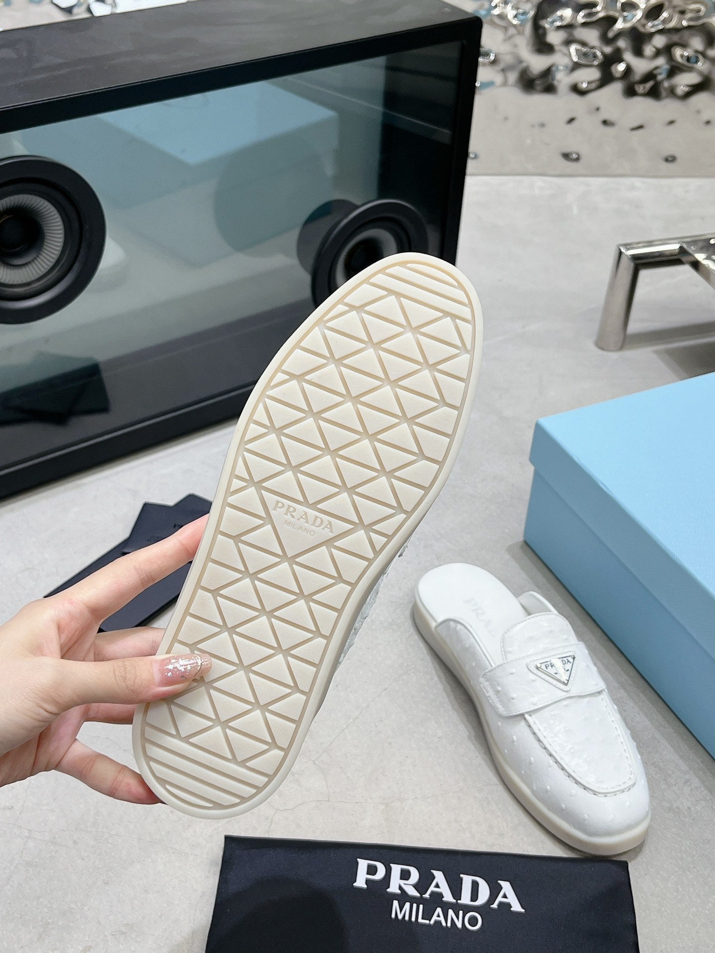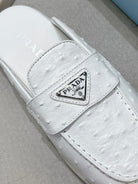 PRA OSTRICH PATTERN MULES WHITE CALFSKIN