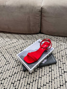 PRA TRIANGLE HEEL SATIN SANDALS CRIMSON