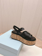 PRA WEDGE PLATFORM SANDALS BLACK CALFSKIN