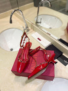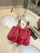 ROCKSTUD SLINGBACK IN CHERRY RED CALFSKIN 50MM