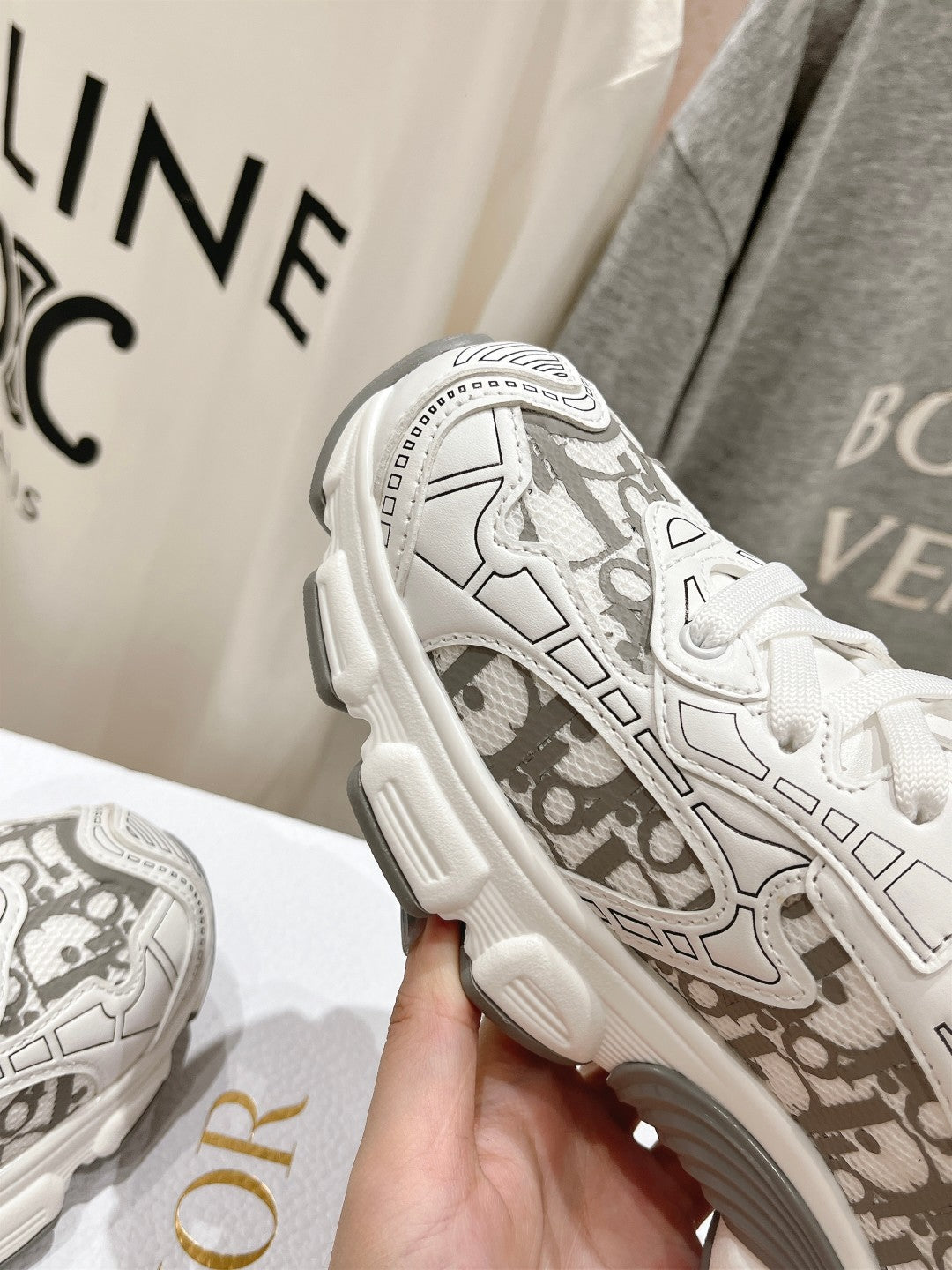 CD Vibe Sneaker White Grey Polyester Mesh Fabric And Cowhide