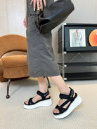 CHLOÉ NAMA WEDGE SANDALS IN BLACK FABRIC AND WHITE RUBBER