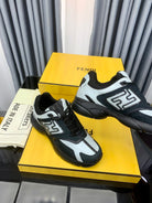 FENDI FASTER TRAINER IN BLACK SUEDE MIX WHITE CALFSKIN