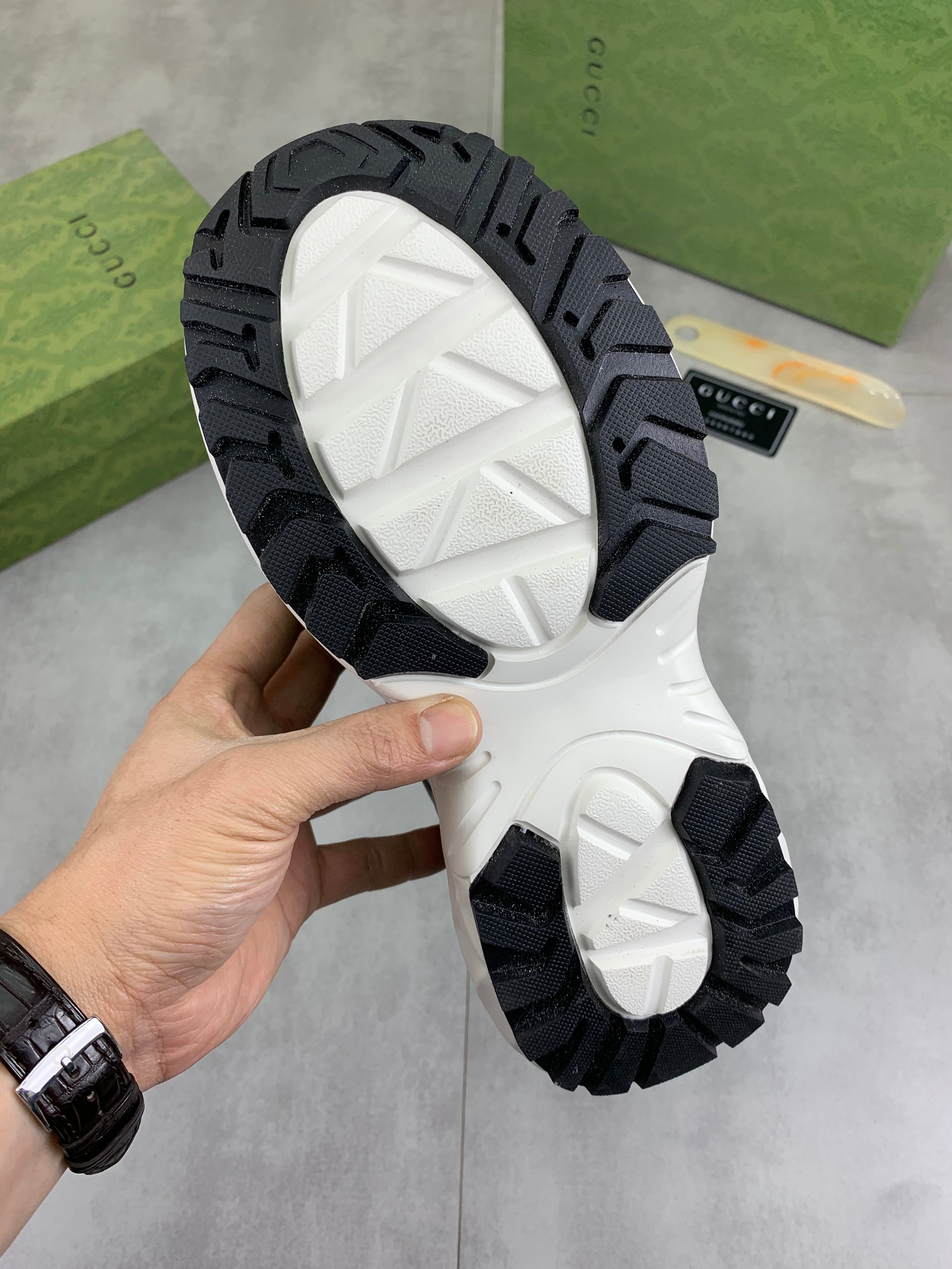 GG Men's Rhyton Sneaker Green White Calfskin 528952