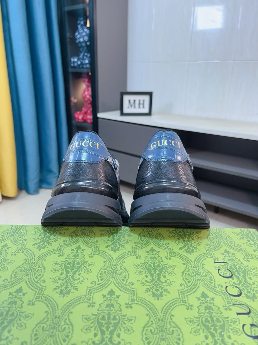GG Men's Sneaker Black Blue Canvas Calfskin 523336