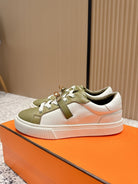 HM Casual Sneakers Sliver Buckle Olive With White Leather