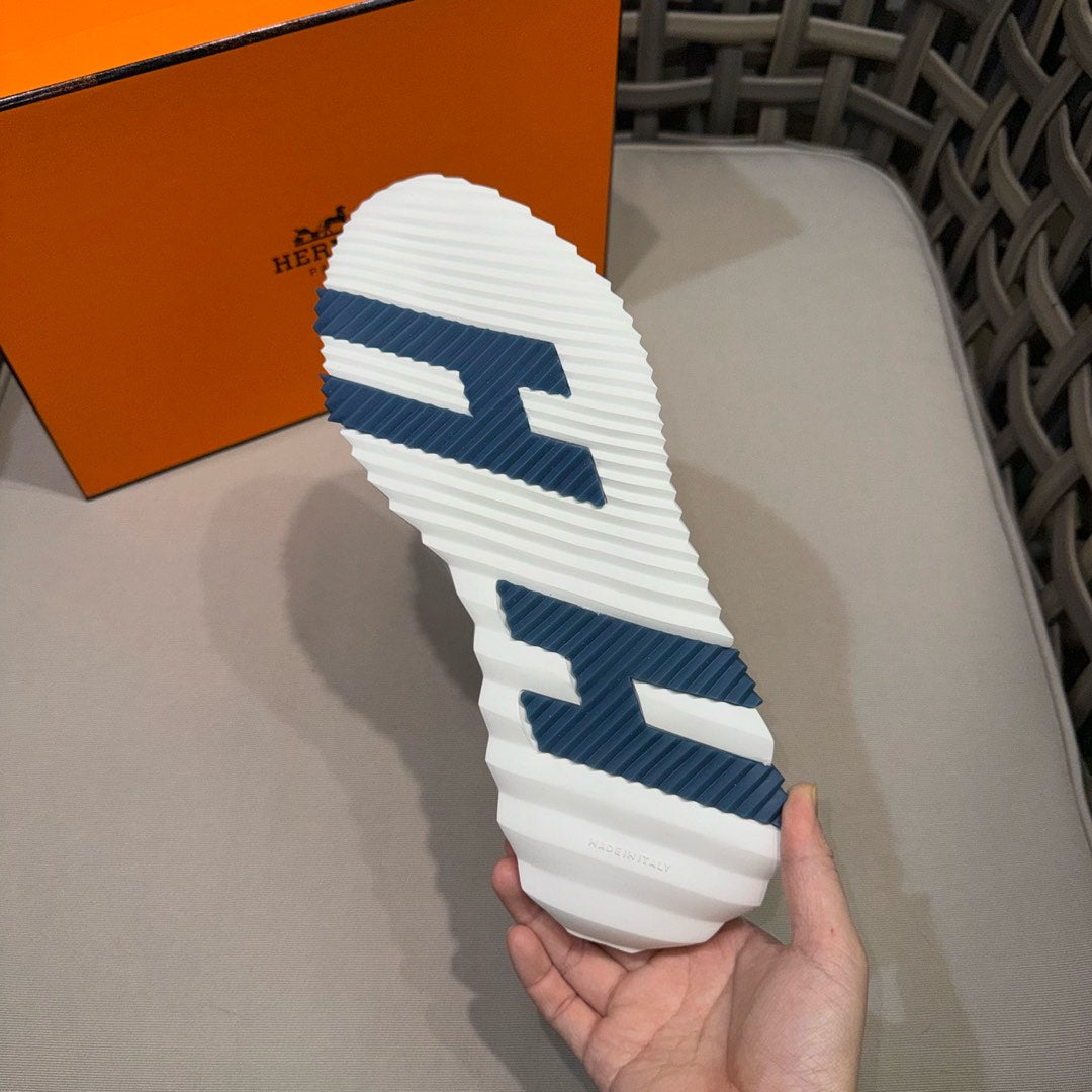 HM Men's Bouncing Sneaker White Blue Calfskin Suede