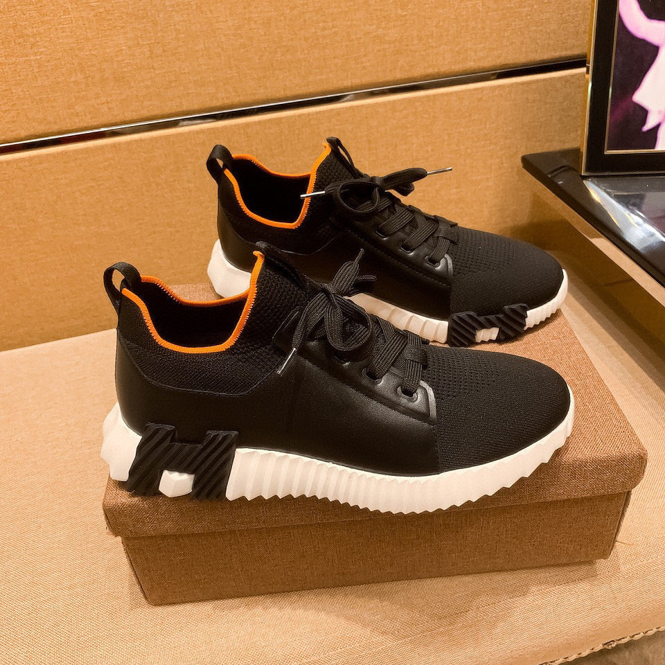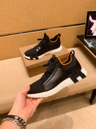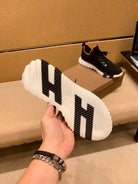 HM Men's Depart Slip-on Sneaker Black Knit Cowhide 709790