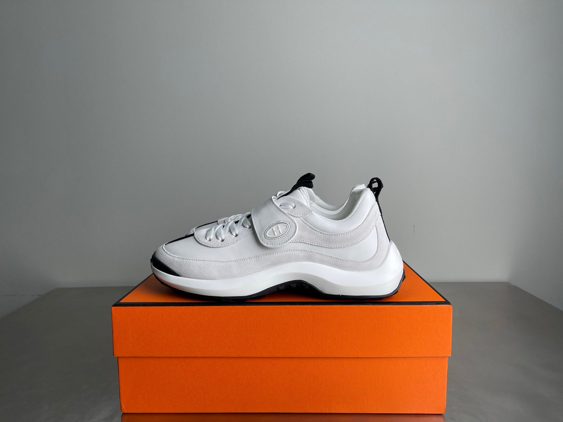 HM Men's Loop Sneaker White Calfskin Suede 741464