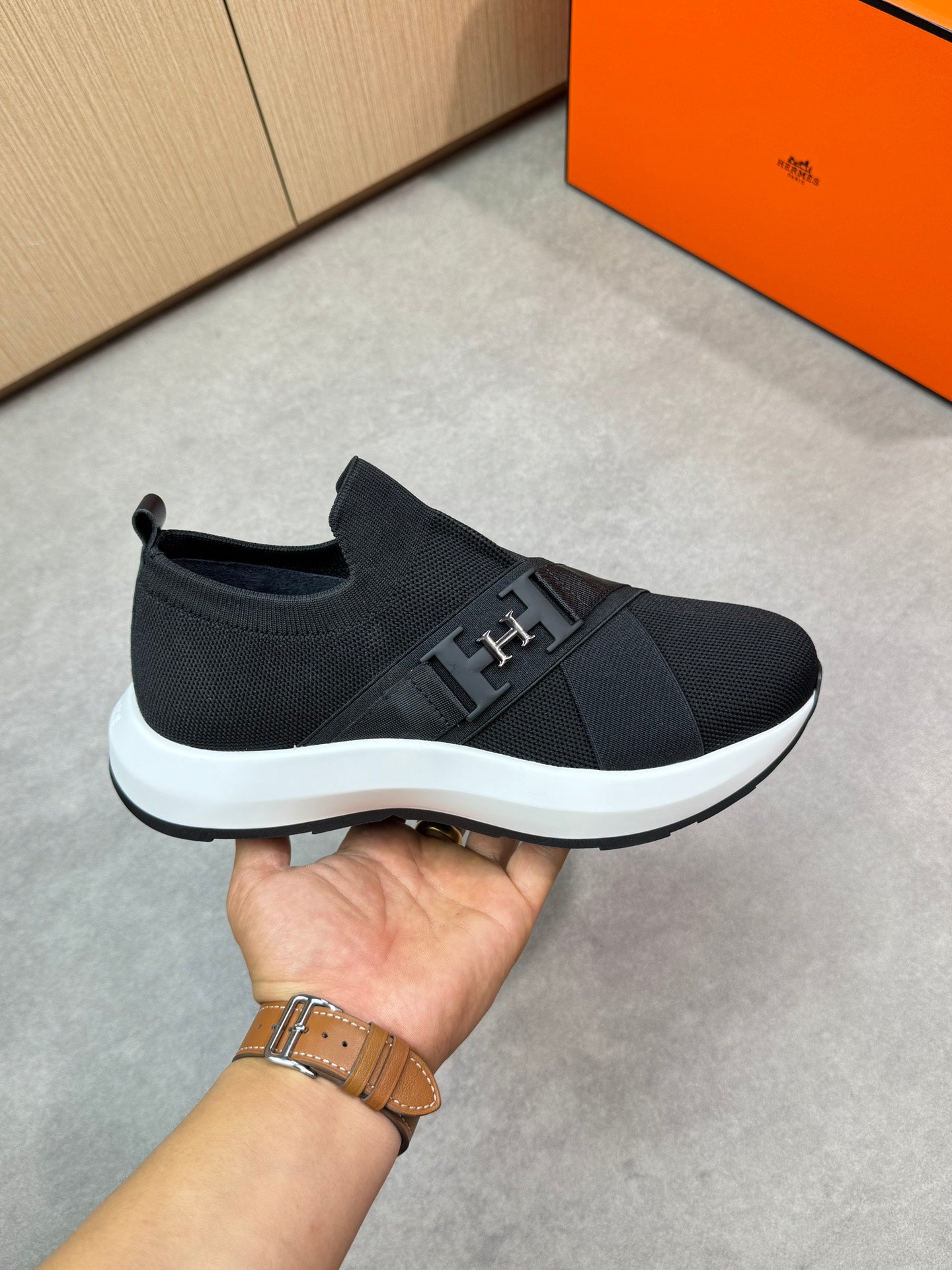 HM Men's Slip on Sneaker Black Knitted Fabric 643380