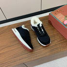 LP Week-end Walk Sneakers In Black Mix Navy Blue Denim With Wool Fleece Lining 984281