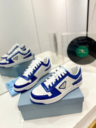 PRA DOWNTOWN NAPPA SNEAKERS WHITE AND COBALT CALFSKIN