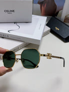 TRIOMPHE SUNGLASS 497821 IN GOLD METAL DARK TEAL LENSES