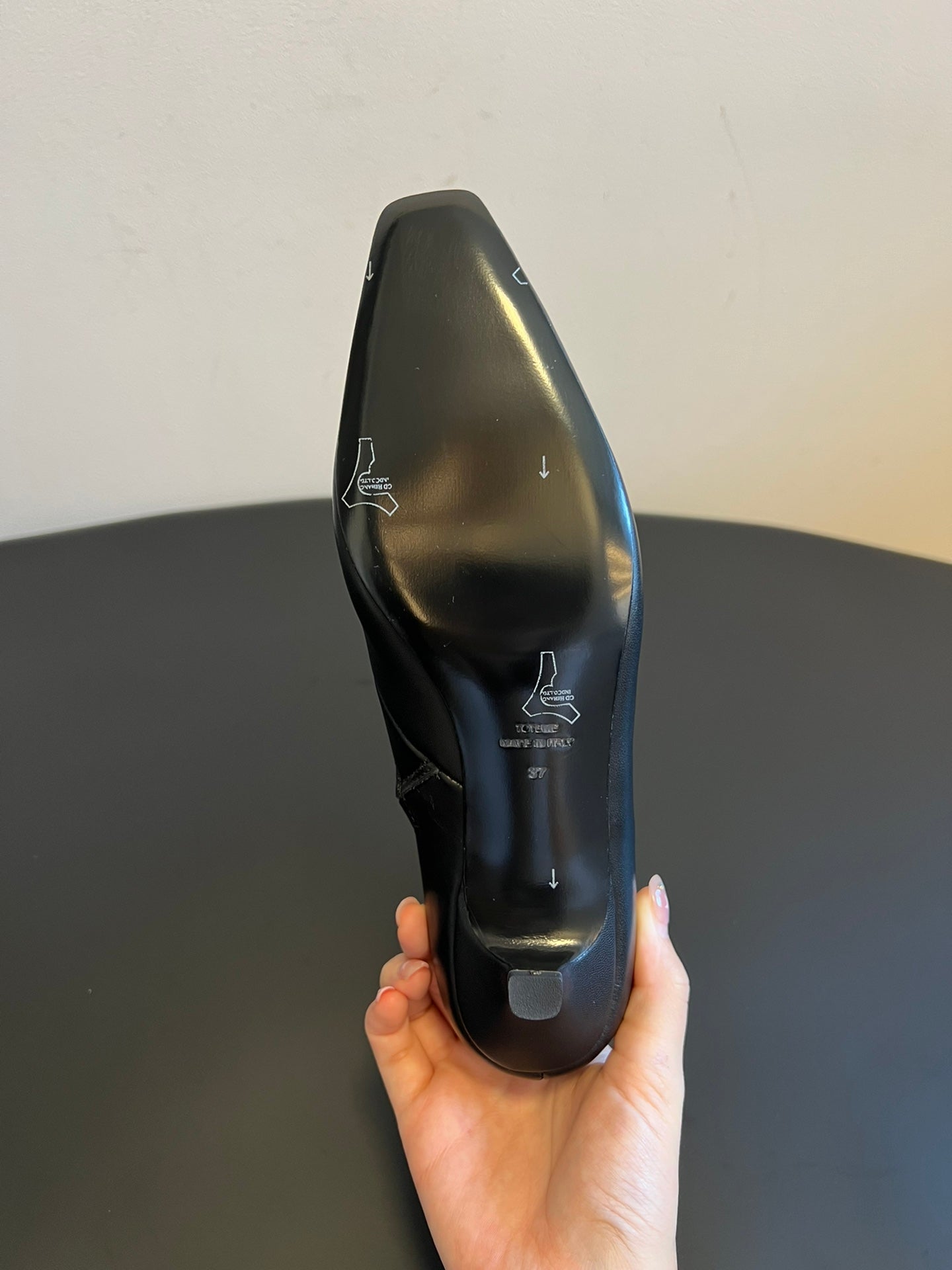 The Row 2025 Heel Leather Ankle Boot Black Calfskin 561612