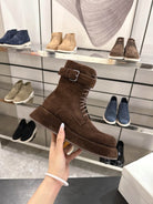 The Row 2025 Lace-up Boot Brown Suede 543370