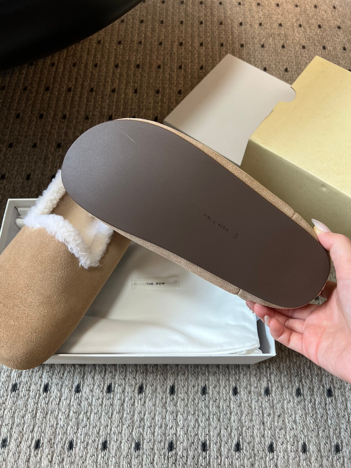 The Row 2025 Loafer Beige White Suede Wool 561631