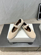The Row 2025 Round Toe Ballet Flat Beige Suede Fleece 540490