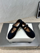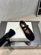 The Row 2025 Round Toe Ballet Flat Black Suede Fleece 540488