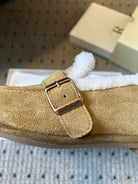 The Row 2025 Shearling Loafer Tan White Suede Wool 561603