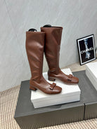 The Row 2025 Square Toe And Bow Accent Long Boot Brown Sheepskin 540514
