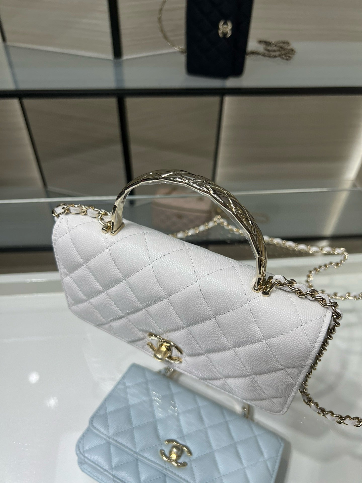 cc 25S Woc Top Handle 19cm White Grained Calfskin Light Gold Hardware