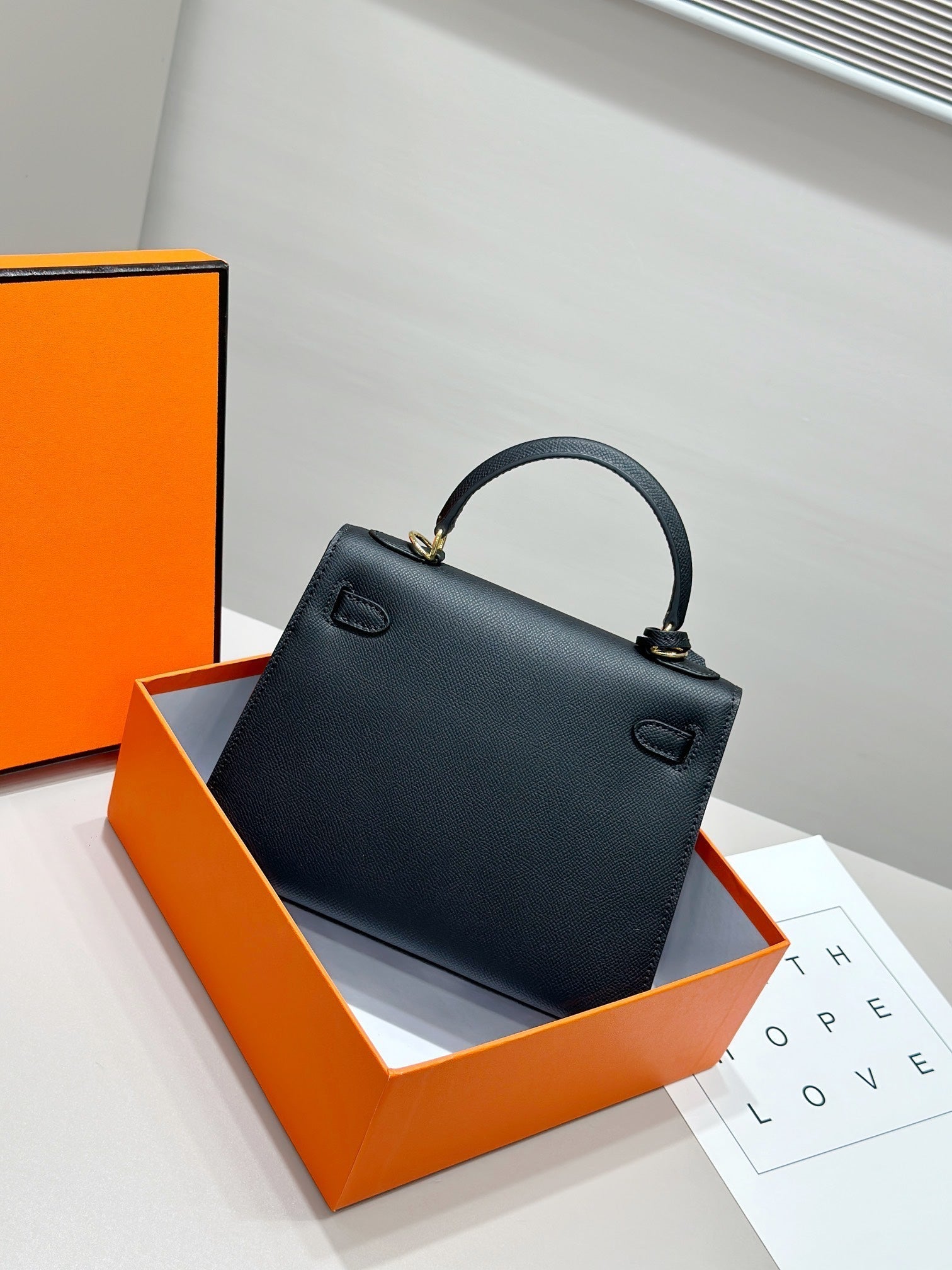 HM Kelly 25cm Black Epsom Leather Gold Hardware
