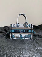 MINI BOOK TOTE 21 BUTTERFLY PATTERN BLUE CALFSKIN