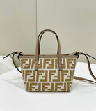 MINI ROLL BAG 15 PEANUT BROWN MIX WHITE FF JACQUARD FABRIC