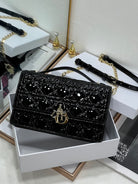 MY CD 24 TOP HANDLE BAG BLACK PATENT LAMBSKIN