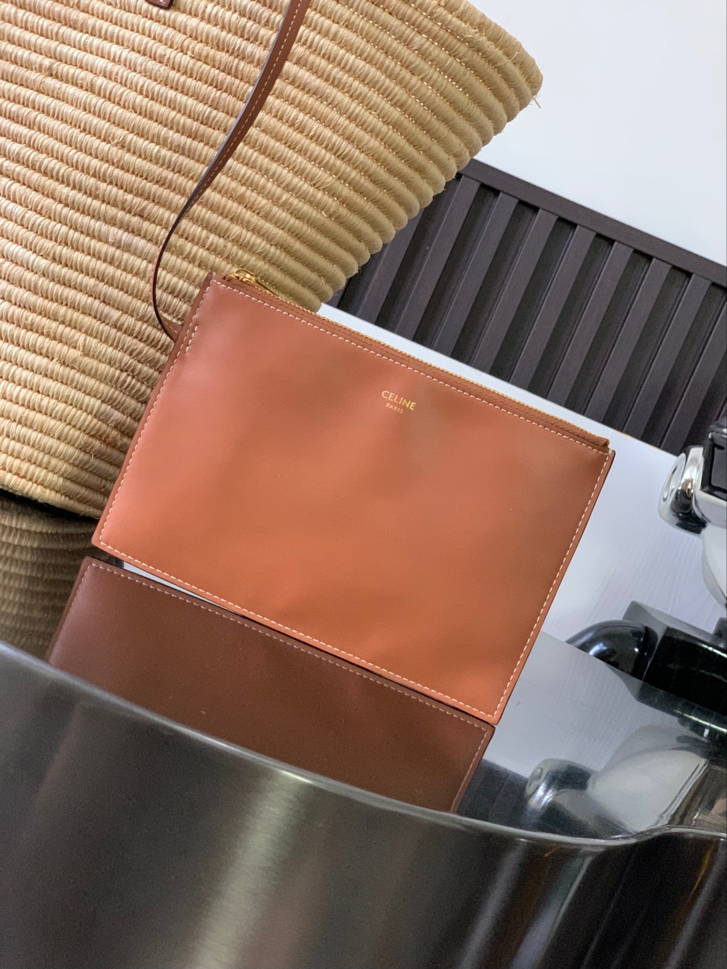 Celine Classic Panier 47cm Braieded Triomphe Beige Raffia Brown Calfskin