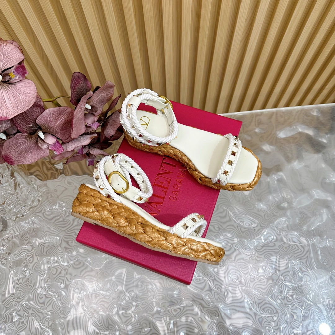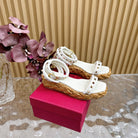 Rockstud Flatform Sandal 45mm In White Calfskin And Raffia 102844