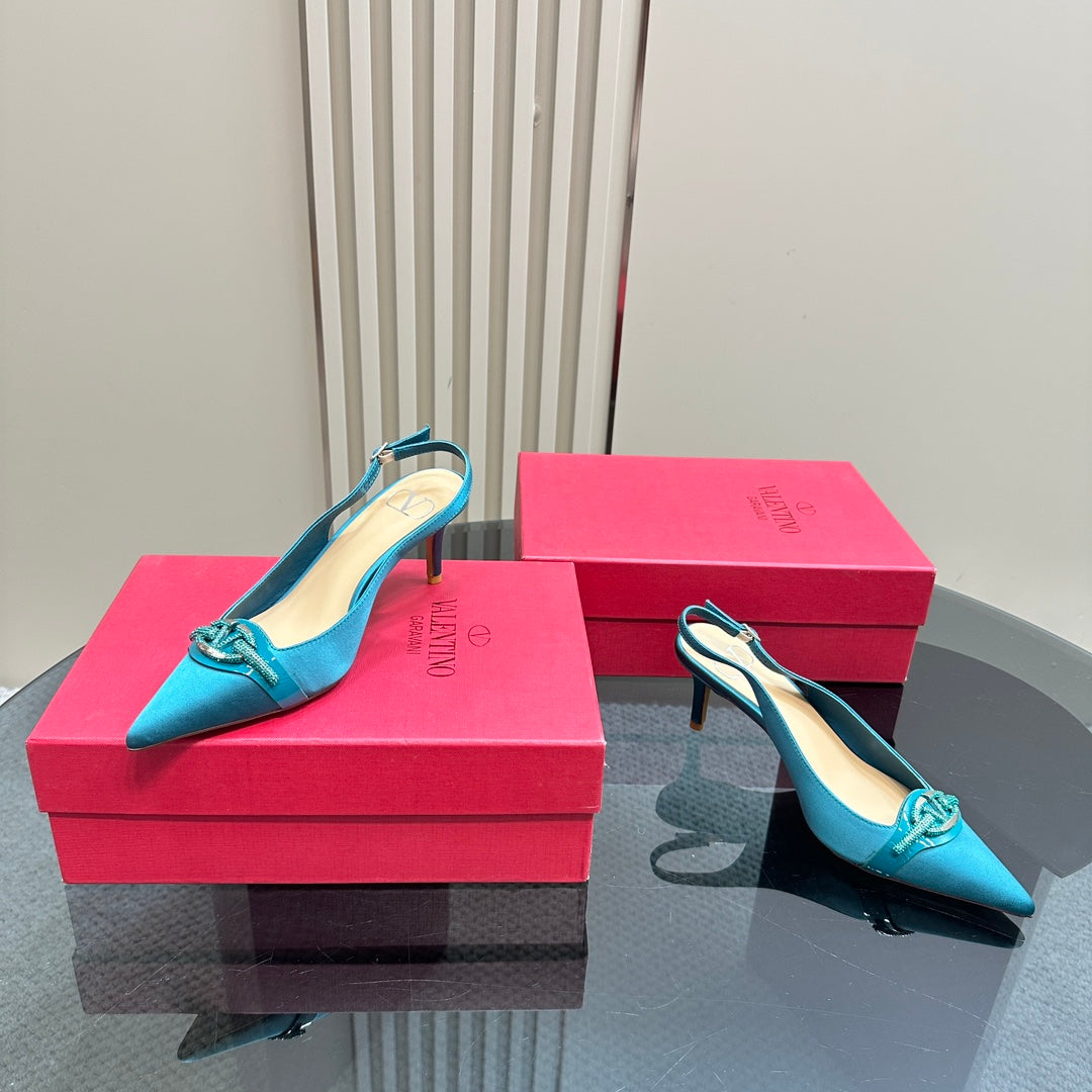 Valentino Slingback Pump 65mm In Duck Neck Blue Mix Beige Lambskin 999015