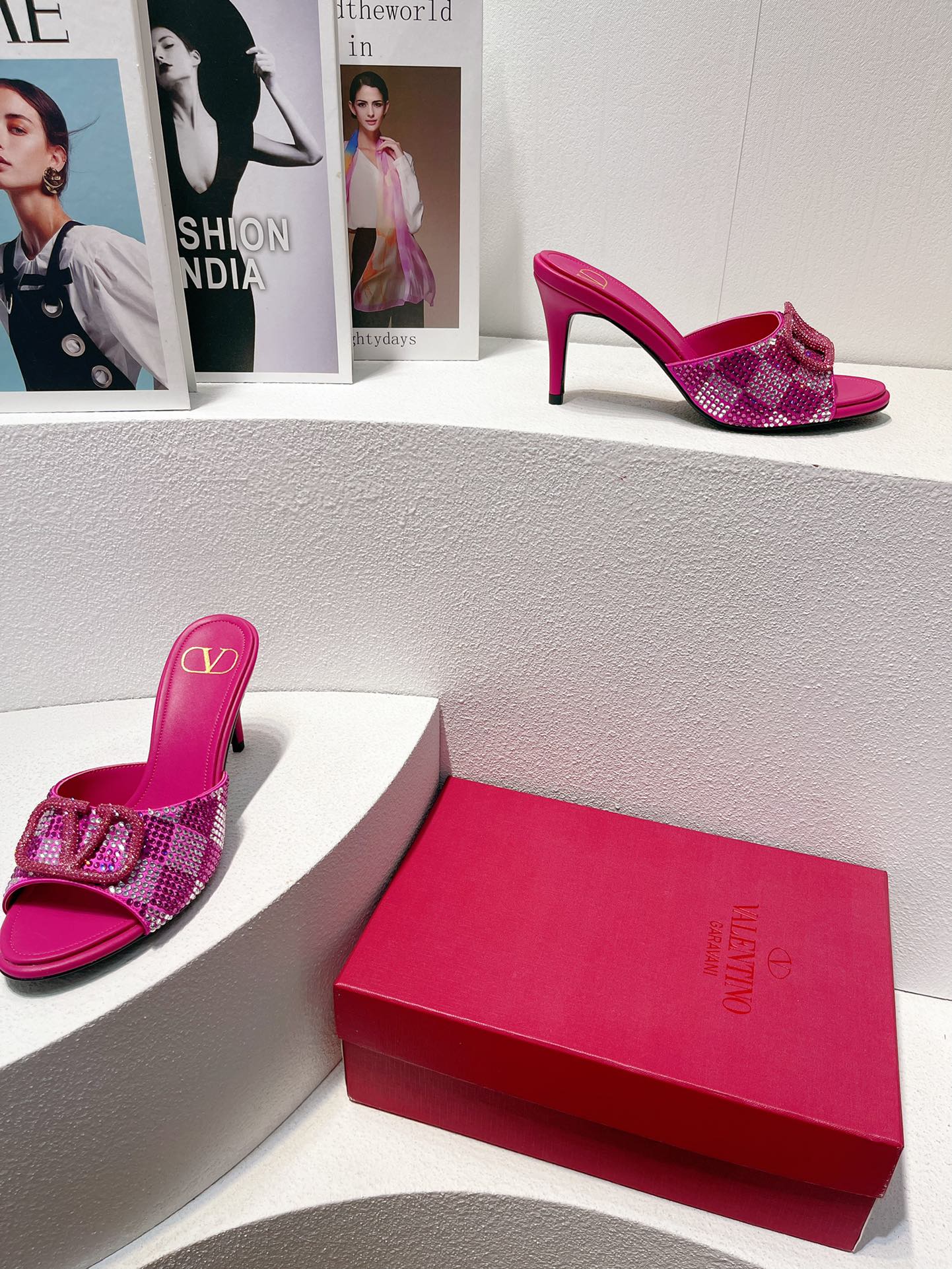 VT High Heeled Sandals Fuchsia Pink Sheepskin 292836