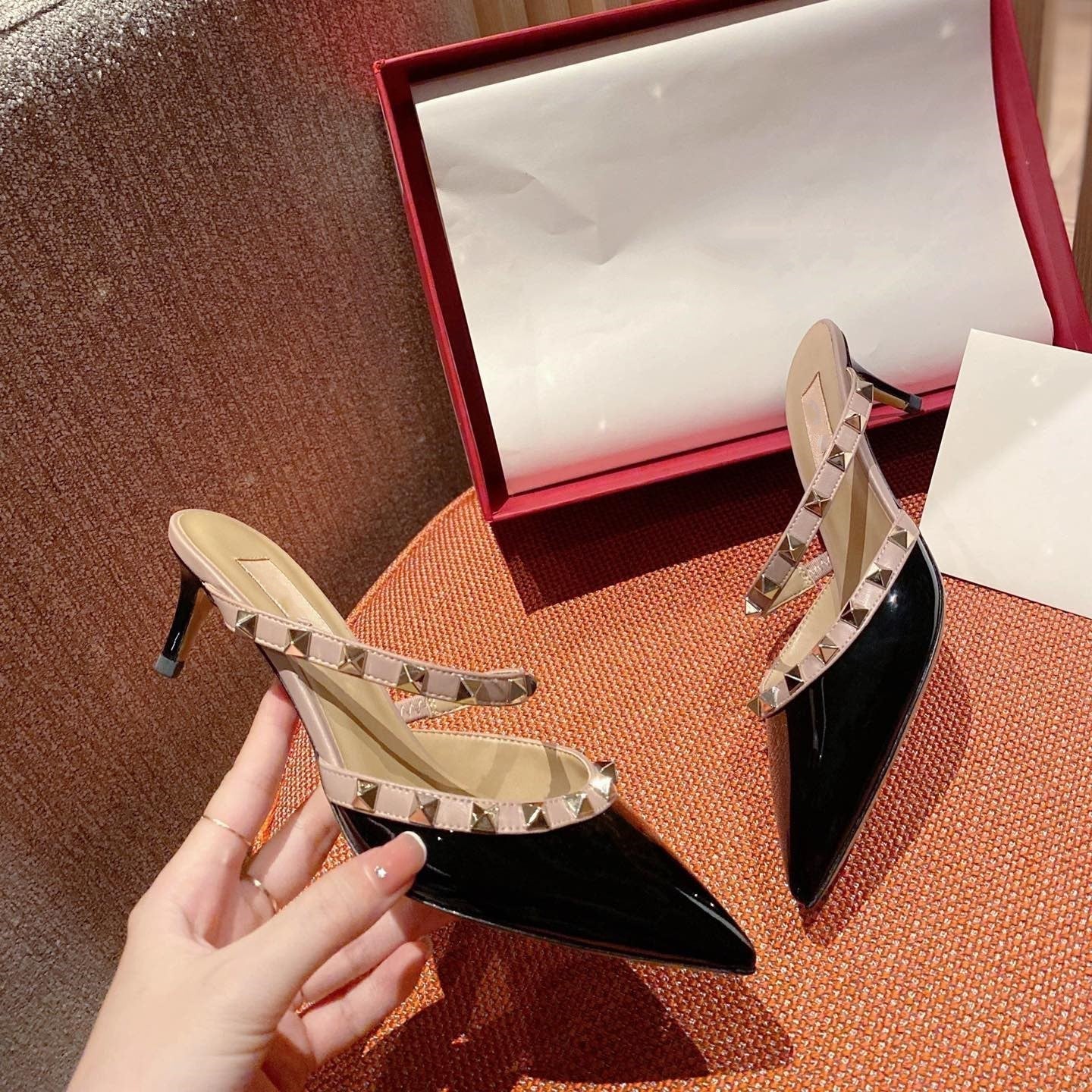 Rockstud Slingback Ballerina Flats Black Leather Cross Straps