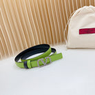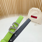 Vlogo Buckle Water Wave Silver Copper Glossy Green Black Leather 20mm Belt