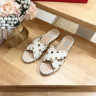 Rockstud Crisscross Espadrilles 20mm Sandal Wedges White