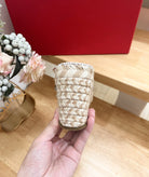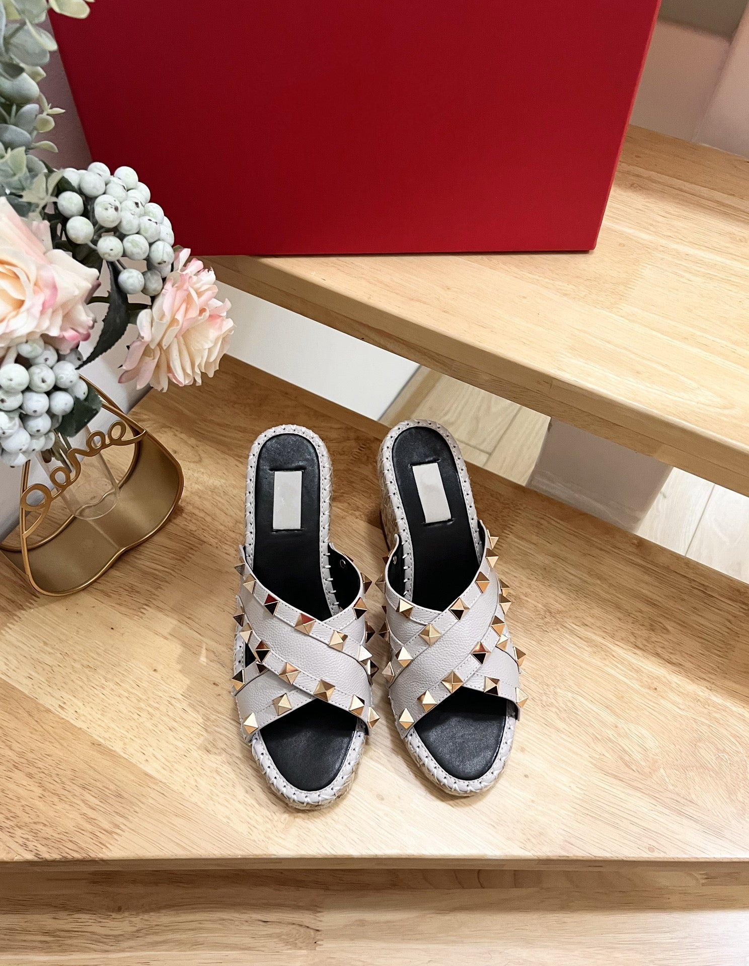 Rockstud Crisscross Espadrilles 80mm Sandal Wedges Ivory
