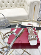 Rockstud 1cm Square Toe Rose Cannelle and Silver Leather Sandals