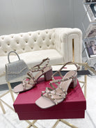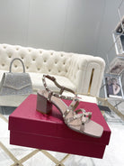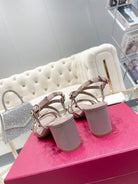 Rockstud 6cm Square Toe Rose Cannelle Leather Sandals