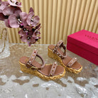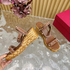 Rockstud Flatform Sandal 75mm In Brown Mix Brownish Pink Calfskin And Raffia 102856