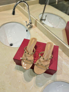 ROCKSTUD MULE SANDALS IN CAMEL BROWN CALFSKIN AND TRANSPARENT PVC FILM