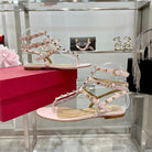 ROCKSTUD THONG SANDAL WITH STRAPS IN BLUSH PINK CALFSKIN