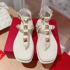 ROCKSTUD THONG SANDALS IN WHITE CALFSKIN