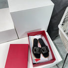 Vlogo Cut-Out Black Calfskin Slide Sandal