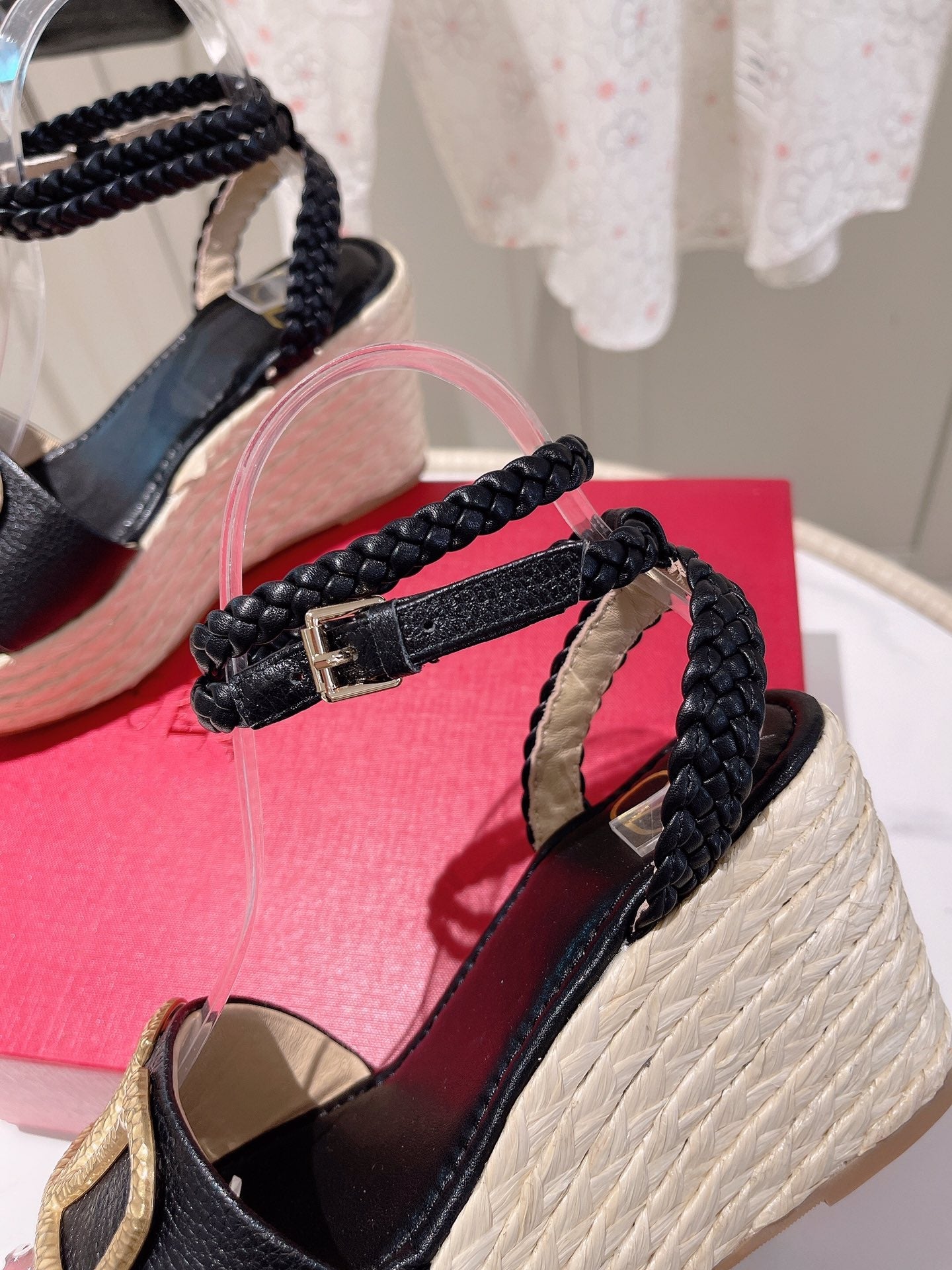 - Nylon rope wrapped wedge heel-10cm waterproof platform-5cm